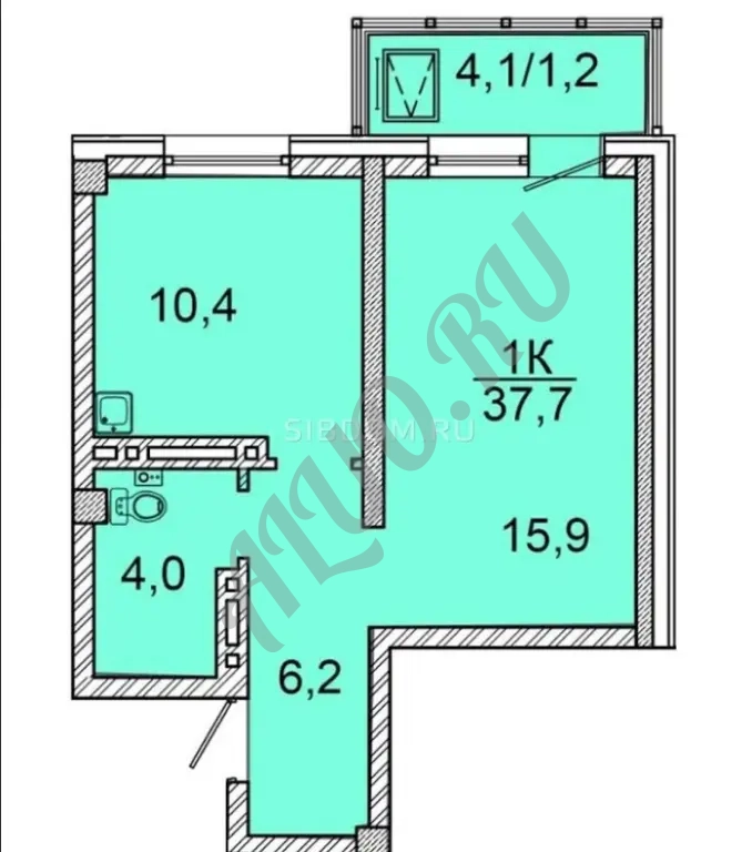 Площадь — 37,3 м²